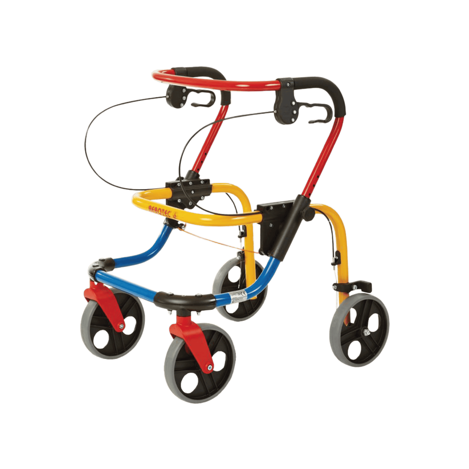 - Andador 4 ruedas infantil con frenos en ruedas traseras.