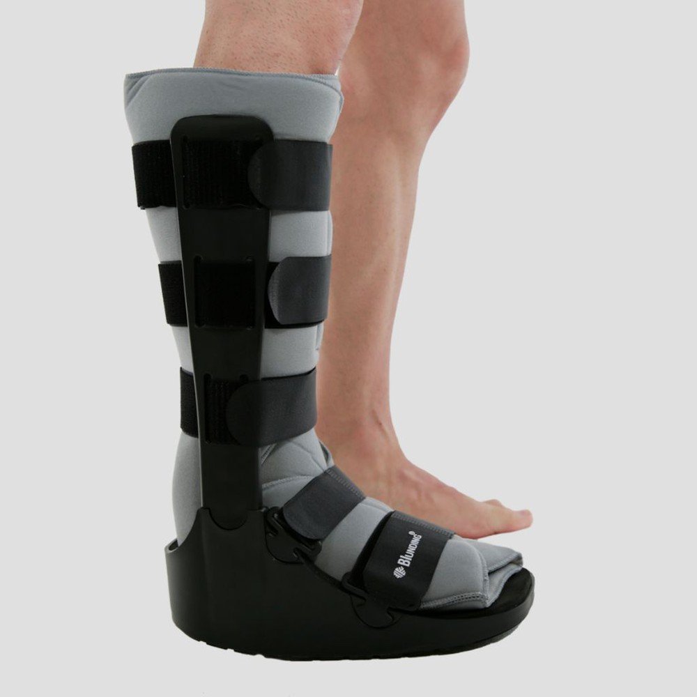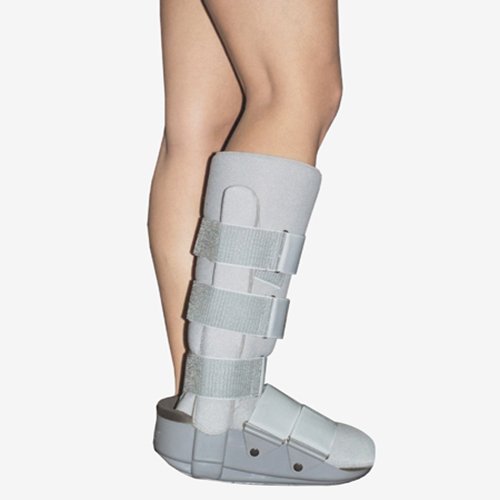 Inmovilizador de tobillo diseñado con balancín en la parte inferior del eje y el talón del perfil bajo permiten un patrón más fácil y natural del paso, más talón amortiguado para una mayor absorción de energía al caminar. Cuerpo confeccionado en laminado de velour y en su interior de algodón, anatómico se ciñe en el pie del paciente logrando un mejor ajuste y comodidad.
