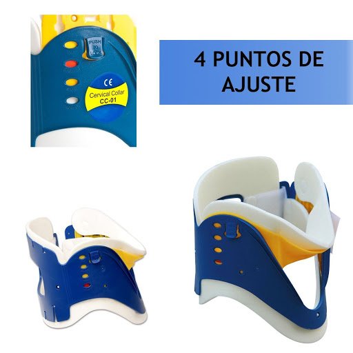 Collar cervical con distintas posiciones, lo que permite un uso rápido y selectivo para su adaptación al paciente, compacto y de fácil uso y guardado.