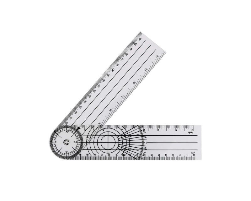 Goniometro, hecho de plástico transparente.