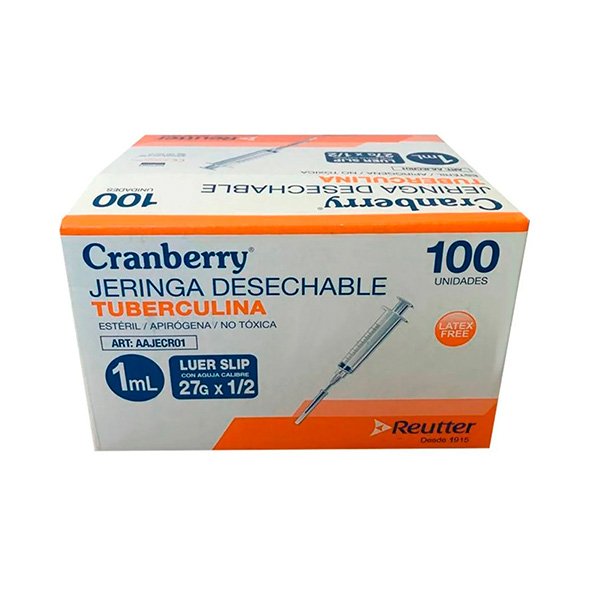 Jeringa tuberculina 1 cc aguja de 27 x 1/2 Cranberry