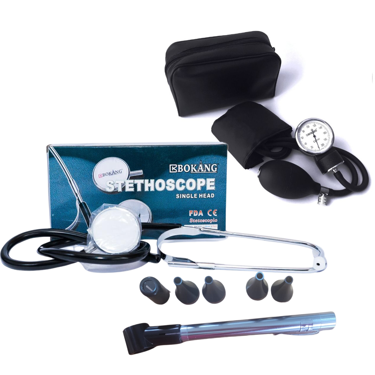 Pack aneroide con fonendo simple y otoscopio Bokang