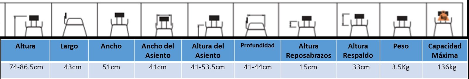 • Altura Respaldo: 33cm