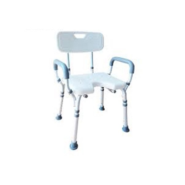 Silla de ducha con respaldo y reposabrazo BA393, para baño con apoyabrazos acolchados, respaldo y asiento curvo ergonómico antideslizante especialmente diseñado para entregar la mayor seguridad y comodidad en el baño.