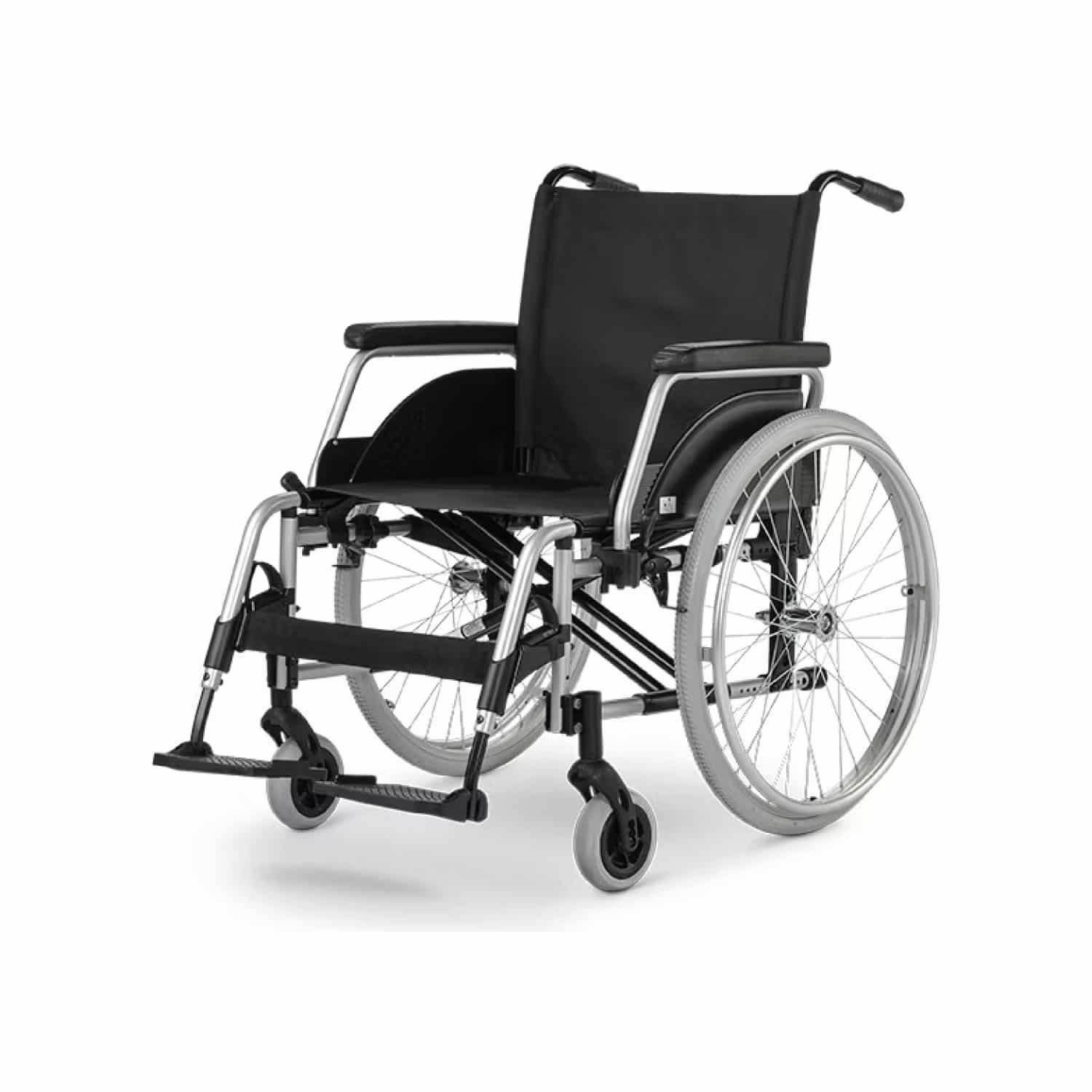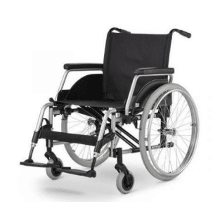 Silla de ruedas plegable estándar desarrollada para adolescentes y adultos. Su uso es exclusivamente para el transporte de una persona sobre el asiento y no como medio de tracción, transportador o similar.