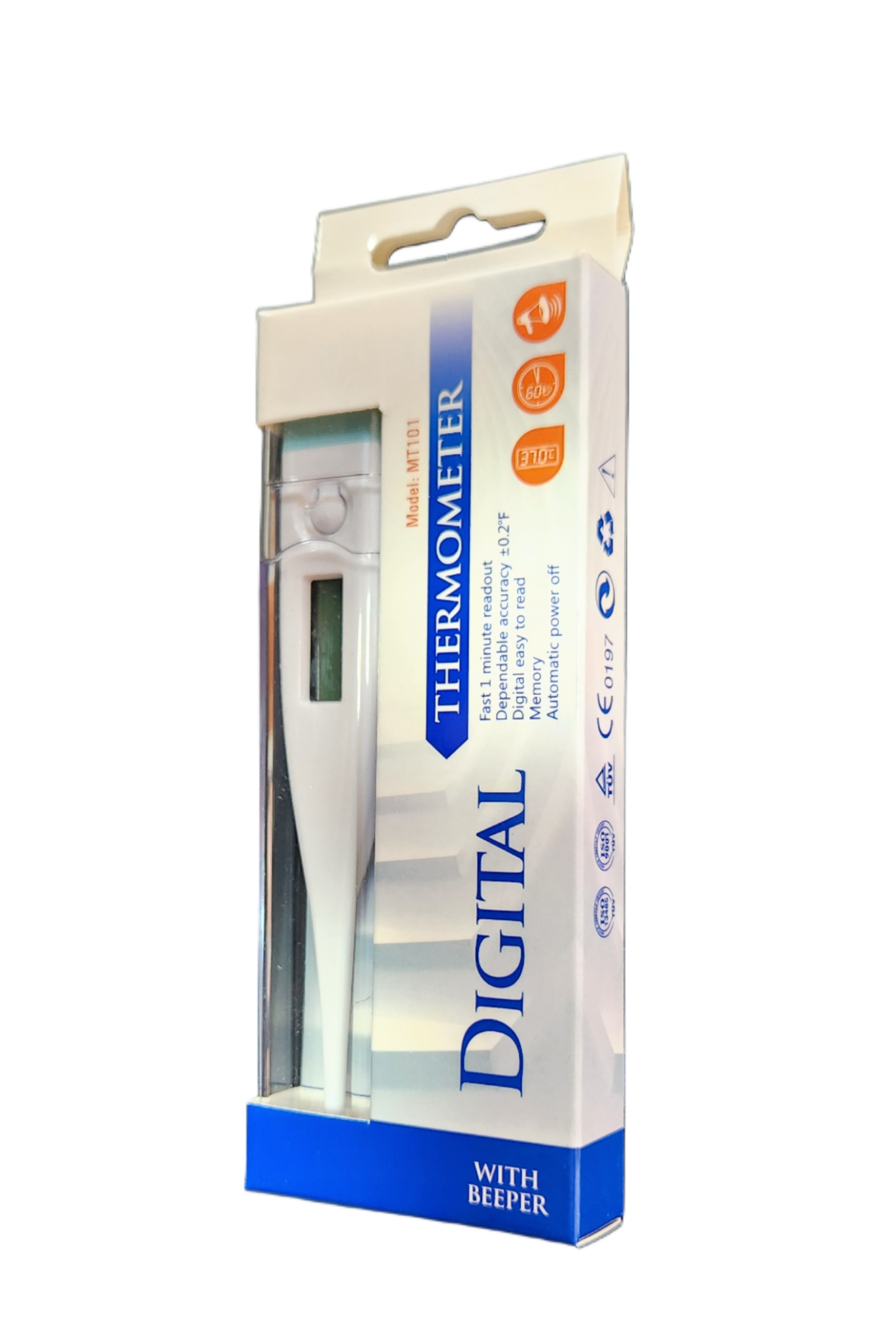 El termómetro digital axilar es un dispositivo médico diseñado para medir la temperatura corporal de manera precisa y rápida. Su uso está orientado a la toma de temperatura en la zona axilar, siendo adecuado tanto para uso doméstico como clínico. Este termómetro cuenta con una pantalla digital que facilita la lectura y una sonda rígida para una correcta colocación en la axila.